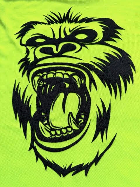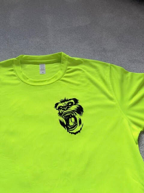 Gorilla activewear T-shirt featuring raised black print on both the front and back.