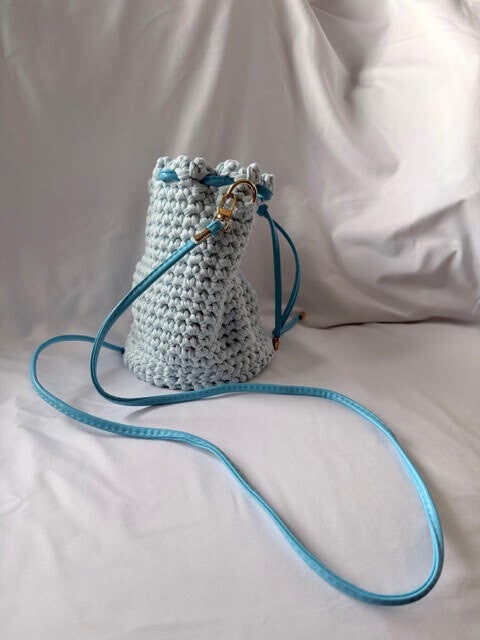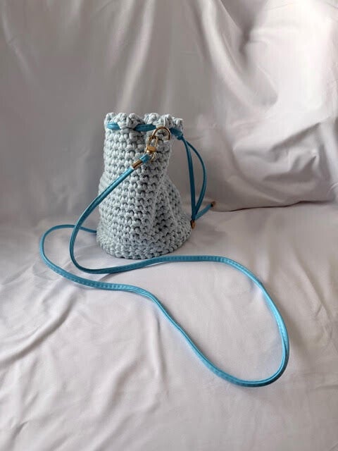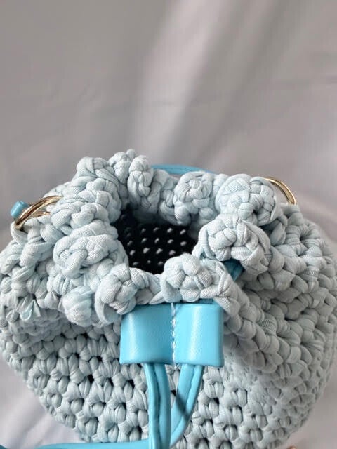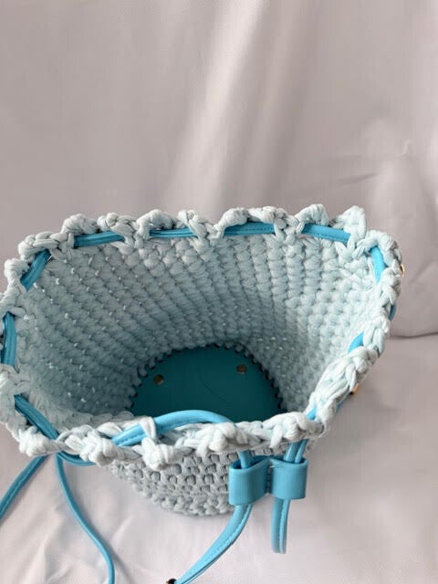 One of a kind handmade crochet bag in a Pale Blue with Sky Blue accessories,