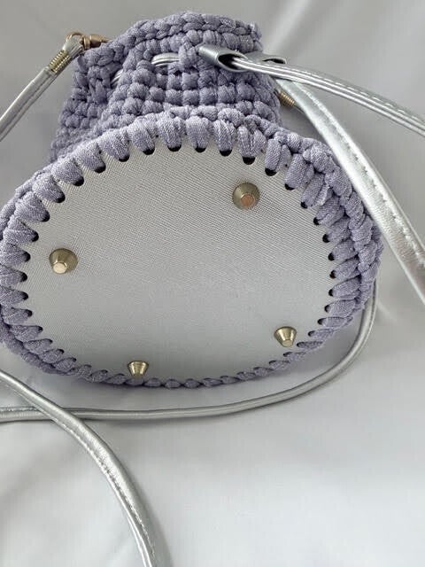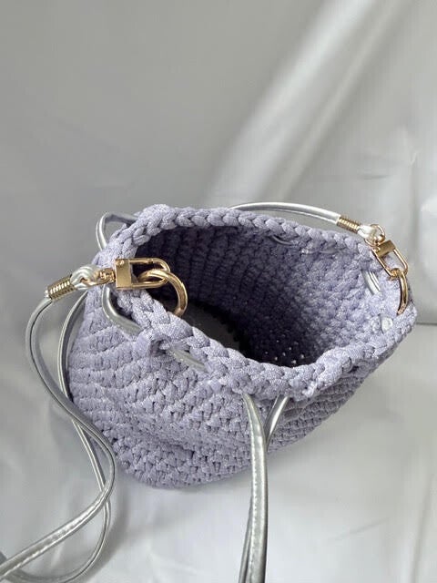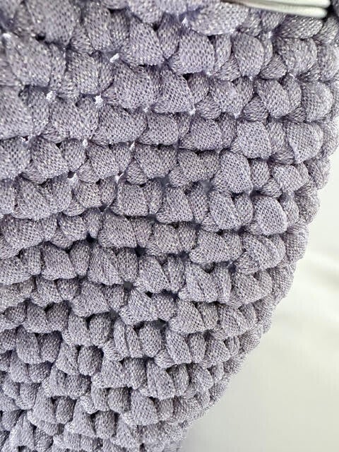Lilac colour bag with glitter effect in the T-Shirt yarn.